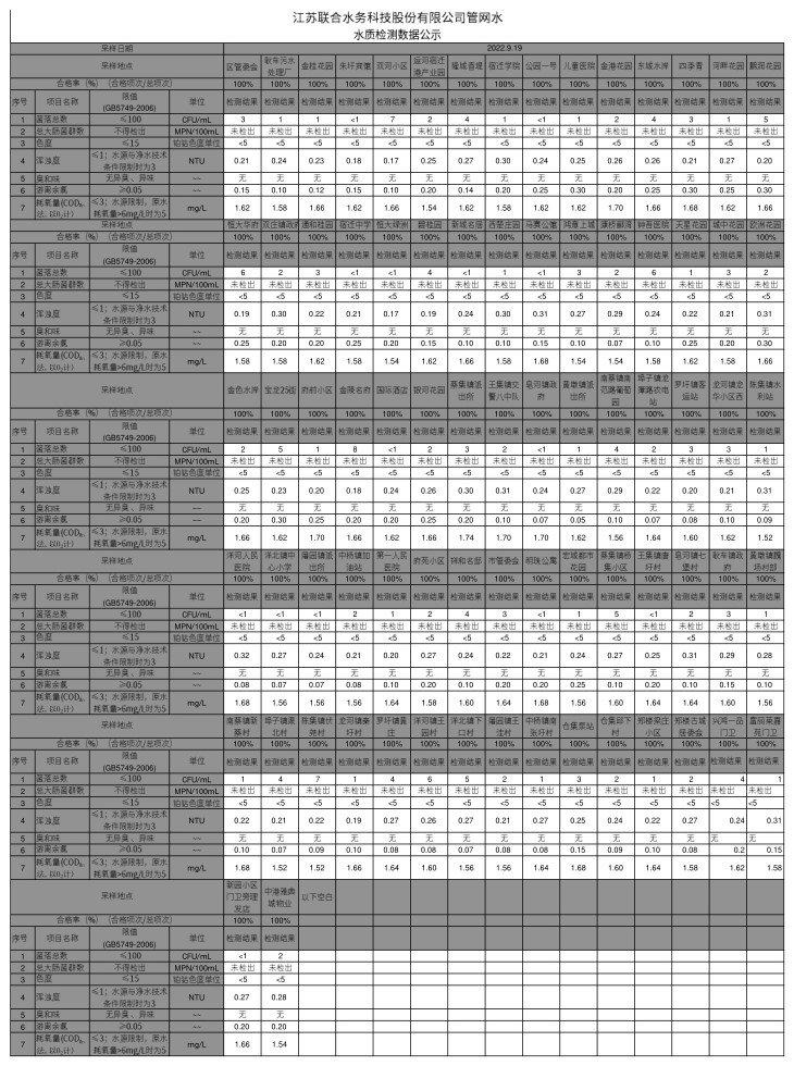 管网水半月公示(2022年9月下半月)