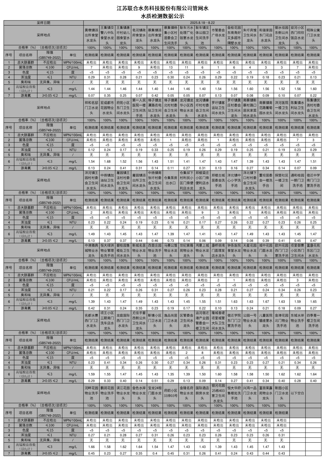 管网水半月公示(2025年8月下半月)