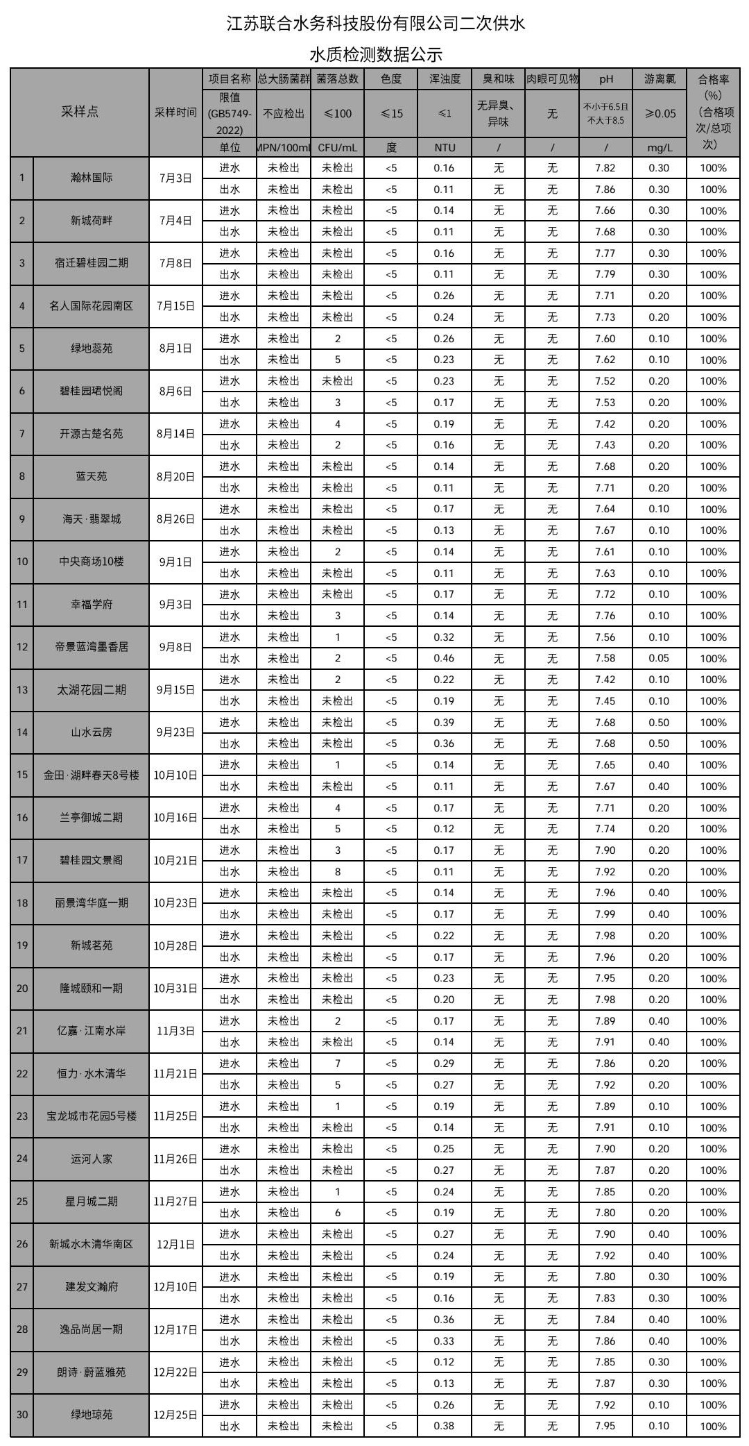 二次供水半年公示(2025下半年)