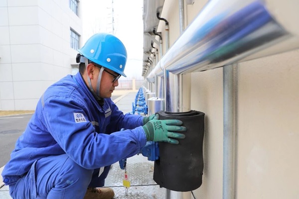 作为城市供水系统的“心脏”,水厂与原水泵站的安全稳定运行是防寒保供的第一道防线。公司立足“早部署、早排查、早防护”,对厂区供水设施进行拉网式检查,精细化防护露天管道、阀门井、泵组接口等易冻部位。“包扎必须严实,尤其是管道接口、阀门这些容易受冻的地方,更要重点加强。”机电部员工林光荣一边仔细缠绕保温棉,一边反复检查密封情况。今年,公司在常规保温措施基础上,加装铝皮保温外壳,进一步增强保温性能,防止材料风化脱落和外力损伤。通过为供水设施量身定制“保温服”,有效降低低温条件下的冻裂风险,为冬季供水筑牢源头保障。