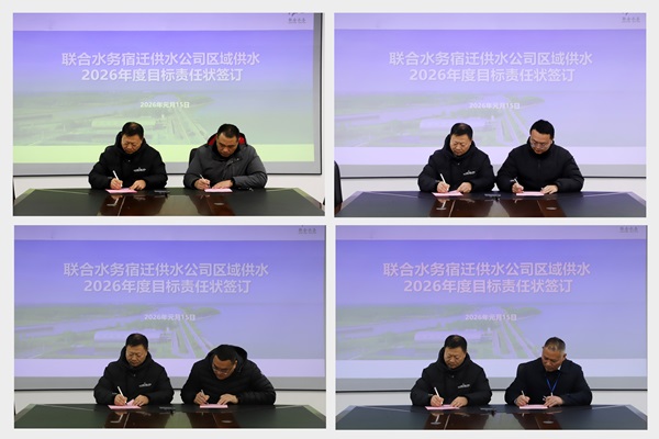 为明确年度目标、压实工作责任,全力保障区域供水各项任务高效落实,1月15日,联合水务宿迁供水公 司举行了2026年度区域供水目标责任状签订仪式。公司副总经理陈少军、人力资源总监孙政伟,以及各区域供水服务中心副主任以上人员共同参加。
