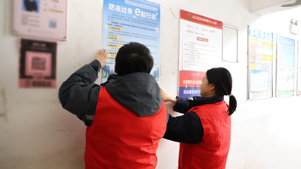 近日,宿迁的城区街巷多了许多忙碌的身影。联合水务一线工作人员身着统一的工装、穿梭于小区楼宇之间,他们正认真地张贴着“防冻过冬 e起行动”的宣传海报,带着油墨气息的防冻指南,从纸张落到了家家户户触目可及的公共空间,也把一份来自联合水务的冬季关怀,悄然送到了居民身边。