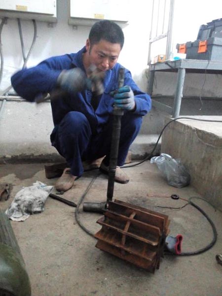 (图2:现场拆卸轴套)