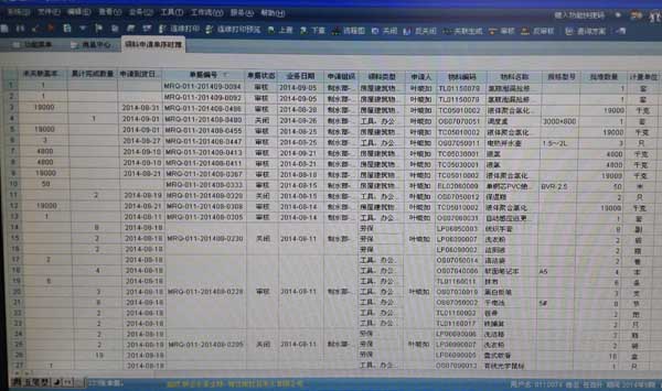 下图为我个人调整后的系统目视截图,较为直观,不用向后拖就能直接看到需求的物料名称、数量、规格和完成情况等。
