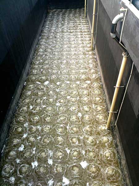 近日,城北污水处理厂联系设备厂家进厂对生化系统曝气设备进行调试,为城北污水处理厂正式进水做好准备。当厂家到厂之后,启动鼓风机,发现由于设备长时间处于未运行状态,部分曝气盘现已不能正常工作。为配合厂家检修,缩短调试周期,城北污水处理厂员工则主动下池工作,并不时的询问曝气盘的日常保养维护原则。协助厂家维修过程中,员工们不仅从理论上熟悉了曝气盘的正确使用方法,同时能够自行动手检修,这将为日后维修问题曝气盘提供一次很好的实践机会。