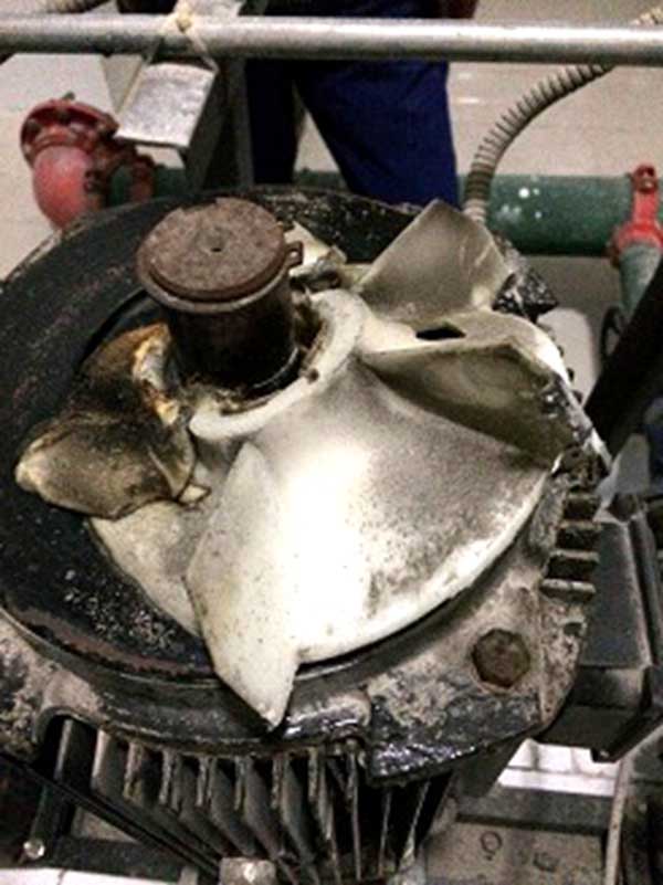 下午4:45,宝龙城市广成增压泵房2#泵维修,前段时间拆修的时候,发现电机的响声特别大,经拆下检查后,发现电机上面轴承卡死,而且叶轮因为电机的轴承卡死发热融化严重,因为是后期接手的老旧小区,初步判断问题在接手前就已存在,经过更换轴承和密封圈,安装测试好后,水泵运行正常。
