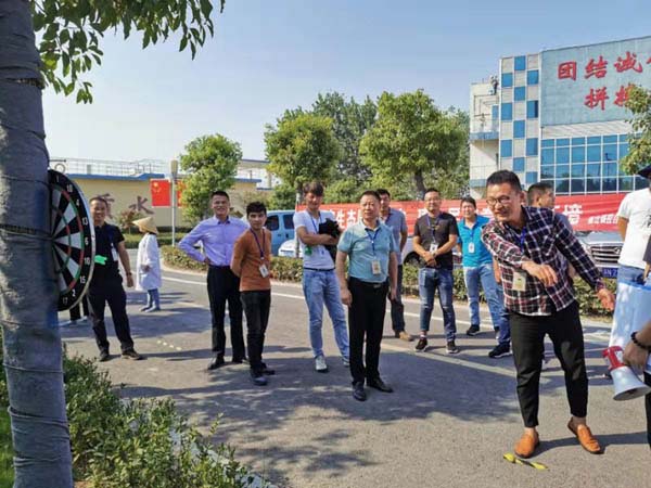 14:00活动正式开始。第一个项目是投飞镖。该项目设为单人奖项,参赛选手不分男女,投镖距离2.5米,每人投5次,取较好的3次成绩累计为个人总成绩。此项目趣味性强,参与度广,吸引了120多人报名参加。分三组同时进行,大家摩拳擦掌,纷纷出手。投中9环的,掌声不断,“好,好,”堪比“小李飞刀”,脱靶的也不乏其人,起哄声、笑声一片,好不热闹。