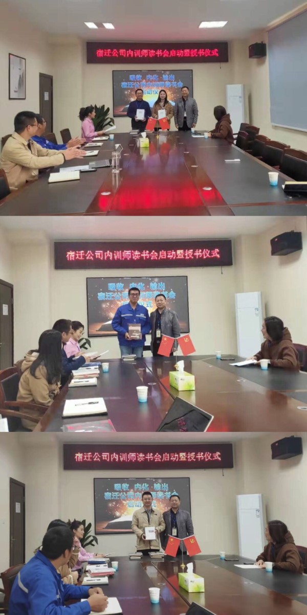 启动仪式共分五大项:一、吴总宣读 《宿迁公司内训师读书会活动实施方案》;二、陈总为内训师们颁发学习书籍和读书笔记本;三、内训师代表发言;四、陈总作重要讲话和指导;五、宣布启动仪式结束。