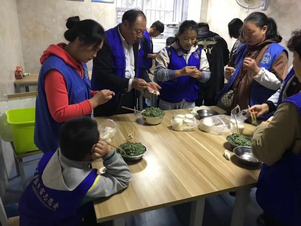(图2:志愿者们包饺子)